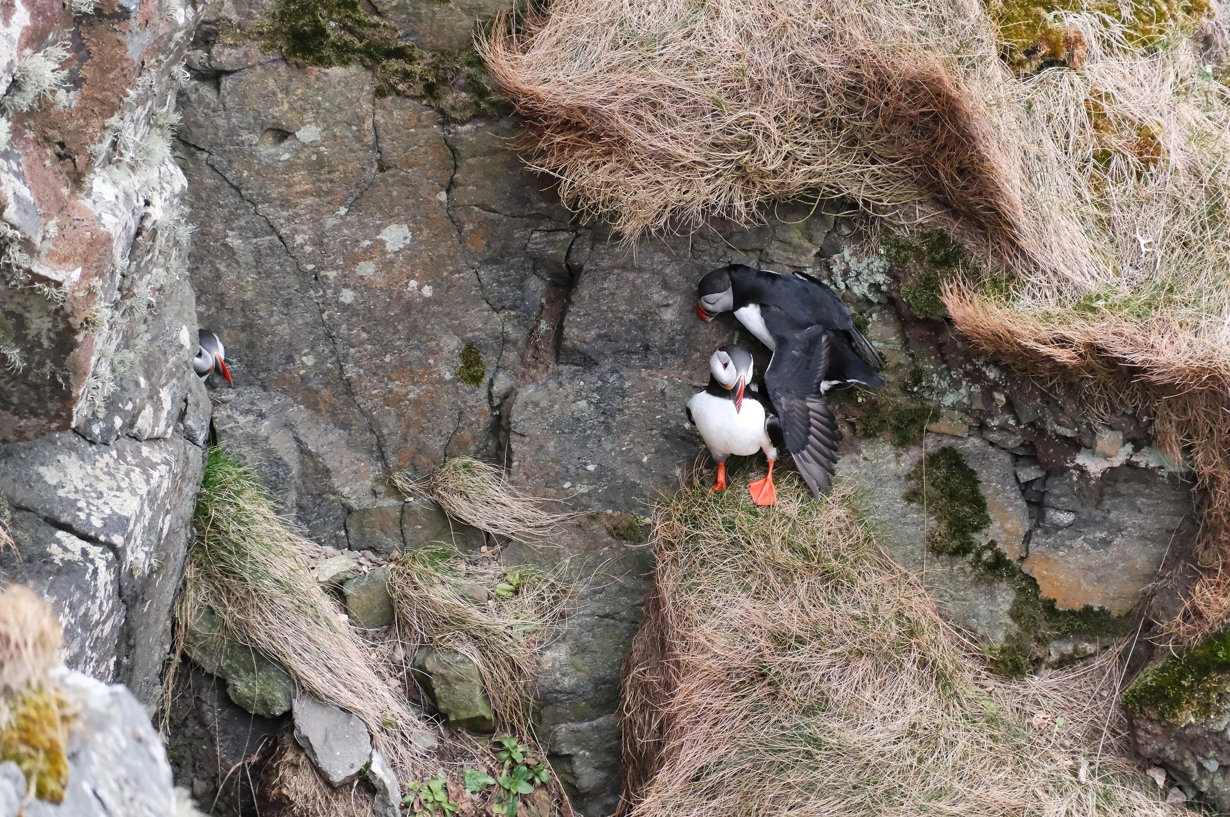 Årets påsketur ble til øya Runde på Sunnmøre. Runde er kjent for sitt fuglefjell, der tusenvis av fugler hekker årlig, den mest kjente er Lunde-fuglen. Vi leide oss en fin liten leilighet på Runde Miljøsenter, og satte av et par dager med mulighet for fjellturer, i tilfelle én av dagene fikk for dårlig vær. Det viste seg å være lurt! Dag 1 var vindfull, men uten alt for mye regn, så jeg fikk et par turer opp på fuglefjellet. Én tur med guttungen i bæremeisen, og én tur alene med kameraet litt senere på kvelden da Lundene kommer inn fra havet. Dag 2 (i skrivende stund) kom med skikkelig vått vestlandsvær, så da er det like greit å sitte inne med kaffe og påskegodt.